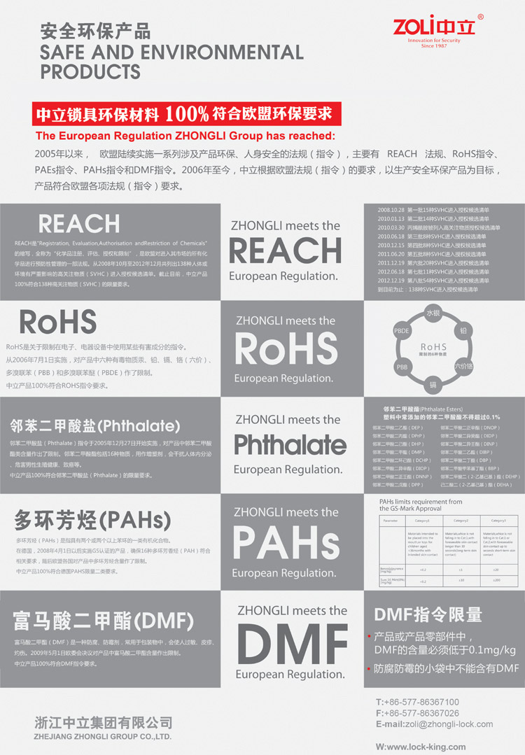 中立鎖具環(huán)保材料100%符合歐盟環(huán)保要求
