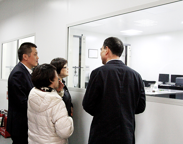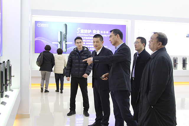 3月9日,中國五金制品協(xié)會(huì)理事長石僧蘭一行四人,來溫州考察中國鎖都甌海智能鎖產(chǎn)業(yè)基地建設(shè)情況,并在甌海區(qū)副區(qū)長周金平,甌海區(qū)經(jīng)信局、商務(wù)局、工商聯(lián)有關(guān)領(lǐng)導(dǎo)陪同下,到甌海智能門鎖生產(chǎn)企業(yè)進(jìn)行考察。在浙江中立集團(tuán)有限公司,他們聽取了中立集團(tuán)詹顯光董事長關(guān)于智能門鎖開發(fā)的匯報(bào),參觀了公司文化展廳、產(chǎn)品展示廳、實(shí)驗(yàn)室和智能門鎖產(chǎn)品,對中立集團(tuán)智能門鎖生產(chǎn)和質(zhì)量給予高度評價(jià)。